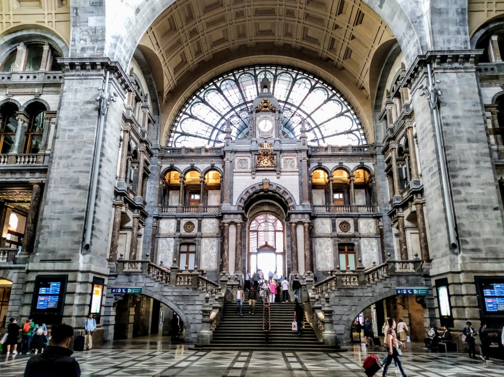 The station is essentially a cathedral to the train. Work started on Anvers-Est in 1895 and continued to its opening in 1905, at which point its name changed to Anvers-Central. There are four levels, one above ground, one at zero level containing shops and ticket offices, and two underground levels, both with tracks. Working escalators quietly usher you up the various levels and as you get to level -1 the magnitude of the train hall is revealed and it took me somewhat by surprise.