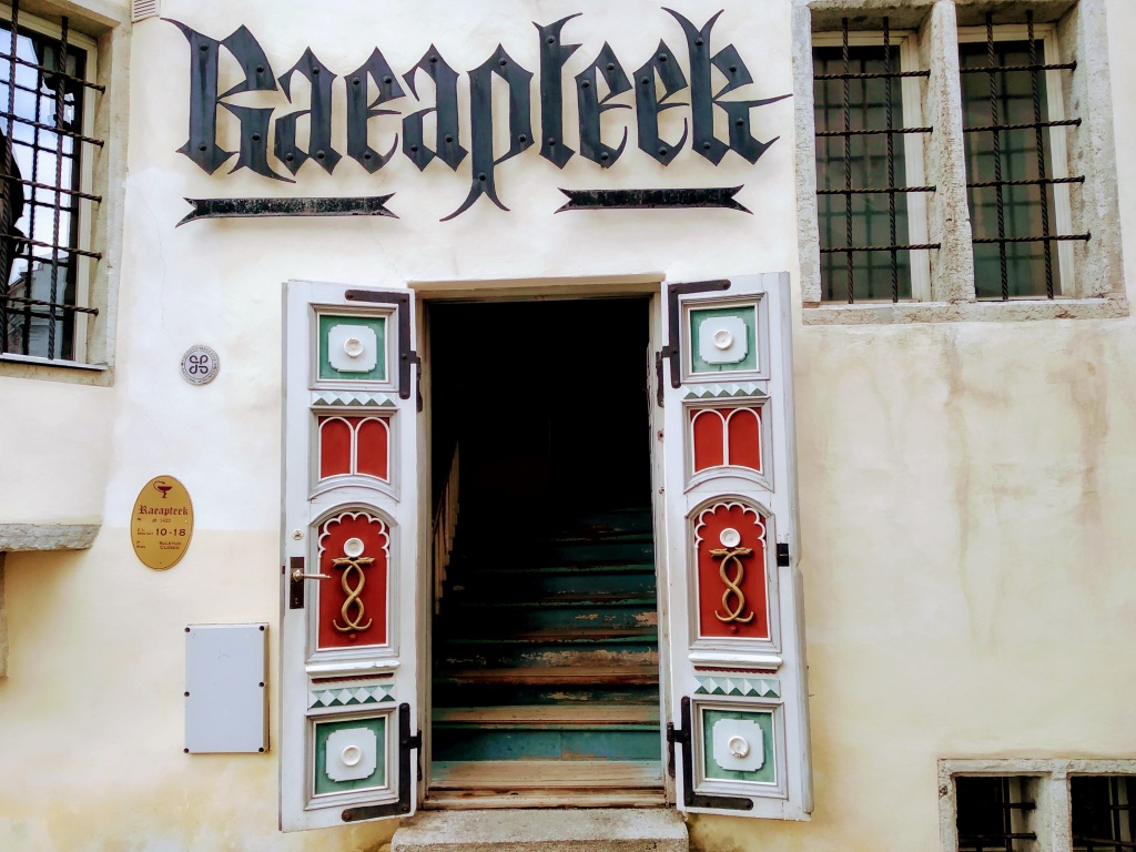 A stone's throw from the Holy Spirit Church is the Town Hall Pharmacy. Nobody actually seems know exactly when it opened, but there are records of its existence and operation dating back to the early 1400s which apparently makes it Europe's oldest and continuously-open pharmacy. I went inside with Host yesterday and looked around the side-room of peculiarities -- a mini museum of all things medicinal -- while she dealt with the apocethary.