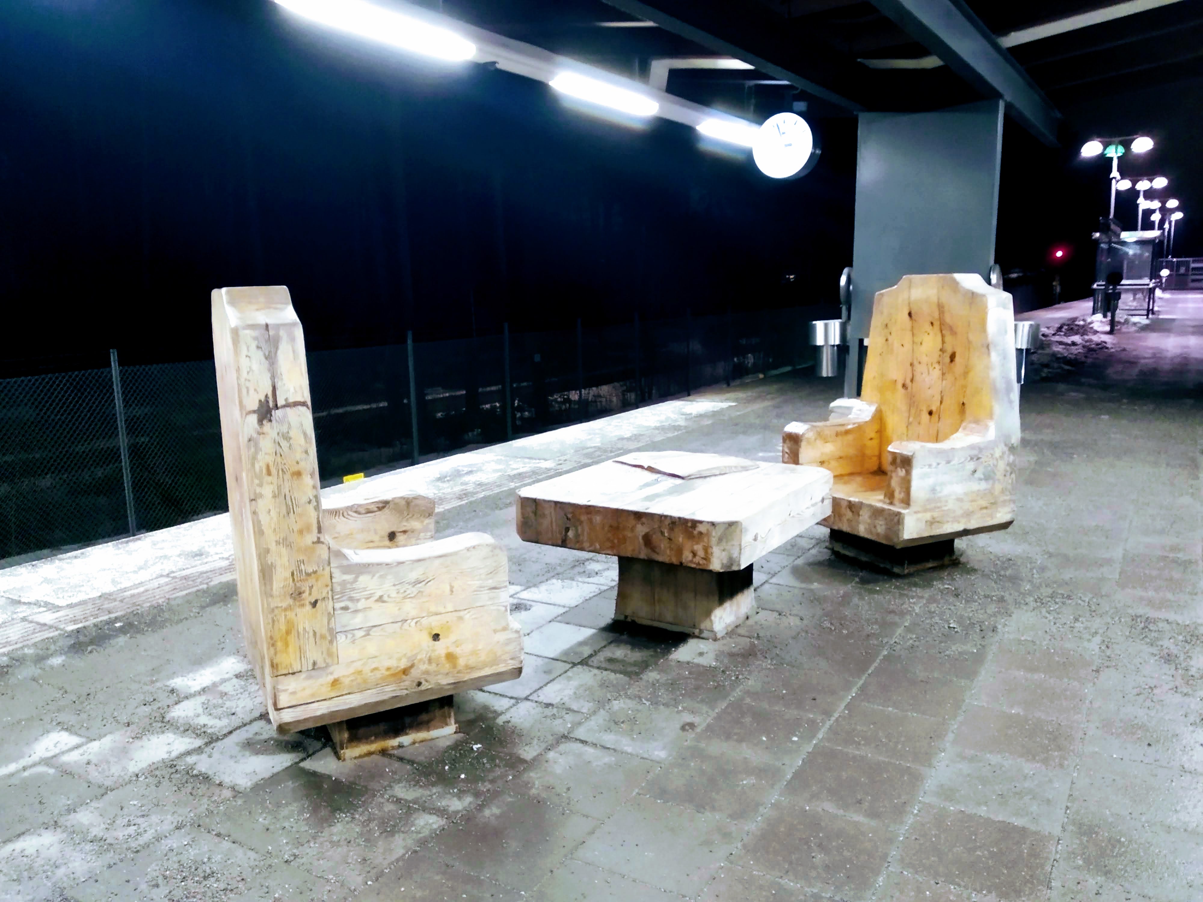 Host's metro, Skokskyrkogården, has a simple wooden installation of a table and chairs, but the central station is a veritable smörgåsbord of glorious. Skokskyrkogården seemed a good place to start.